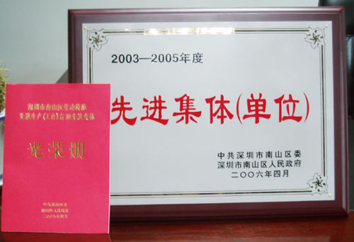 2006年4月,深圳公司获得由中共深圳市南山区委、深圳市南山区人民政府颁发的“2003-2005年度先进集体(单位)”奖状与证书。